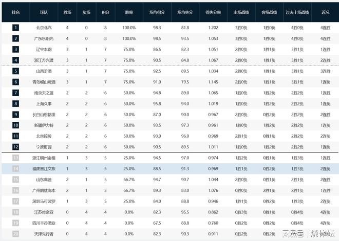CBA最新排名!北京廣東四戰(zhàn)全勝,遼寧第三上海第八,三隊(duì)0勝
