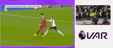 比賽第29分鐘,范戴克在利物浦后場持球推進,哈維-西蒙斯上前逼搶時從背后直接踹到了范戴克小腿跟腱位置,后者痛苦倒地。經過VAR介入之后,主裁判約翰-布魯克斯直接出示紅牌將其罰下。